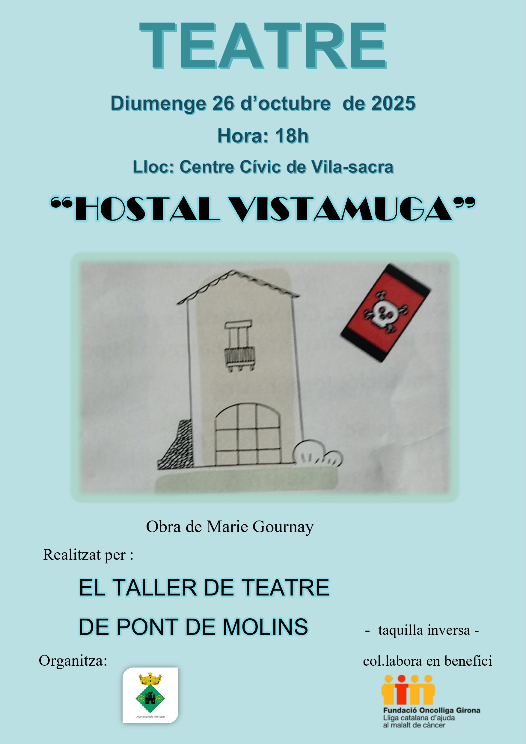 Teatre: “Hostal Vistamuga” Diumenge 26 d’octubre de 2025 Hora: 18 h Lloc: Centre Cívic de Vila-sacra